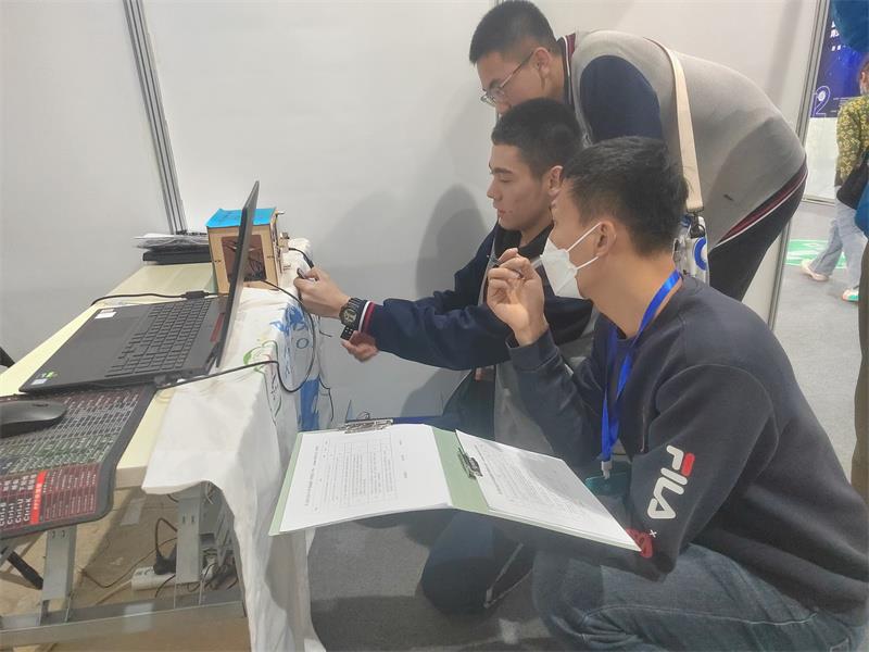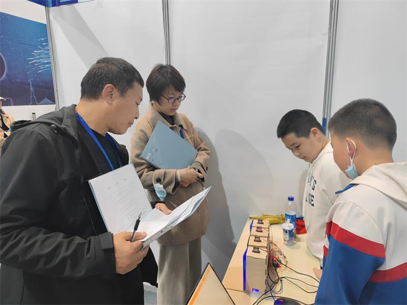 第5届自治区青少年创意编程与智能设计大赛评委专家对技能测试的作品进行点评打分(5/9)