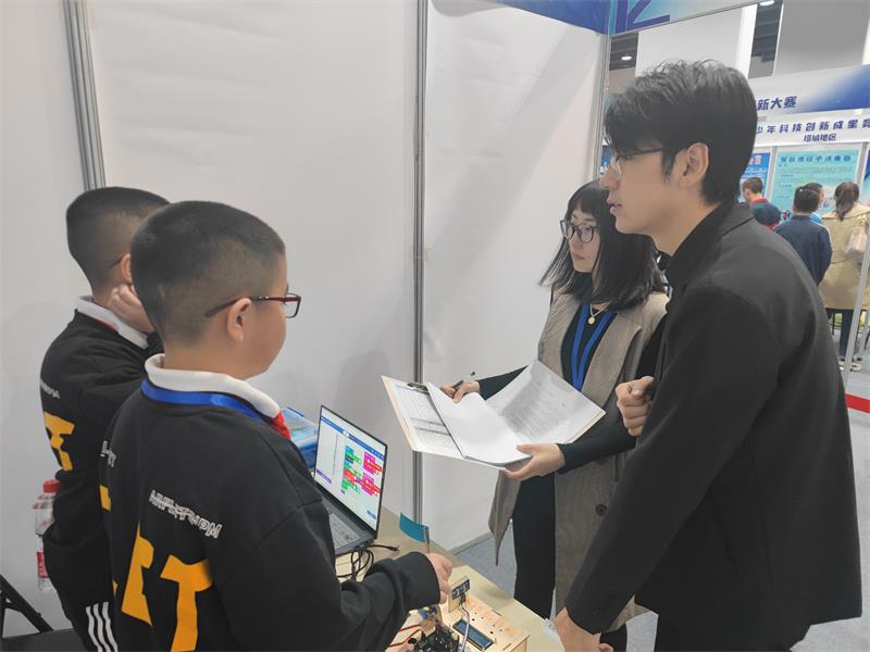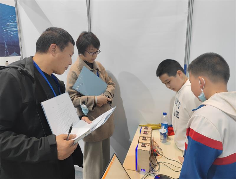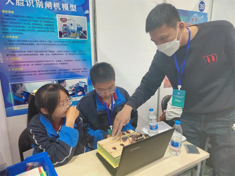 第5届自治区青少年创意编程与智能设计大赛评委专家对技能测试的作品进行点评打分(3/9)