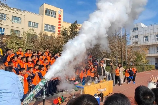 图3:第121小学同学在科学实验展示环节积极参与。