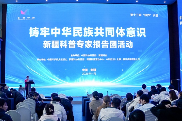 11月17日,由中国科协科普部、自治区科协共同主办的“铸牢中华民族共同体意识”新疆科普专家报告团活动暨2025年第十三期“眼界”讲堂在新疆科协会堂顺利举行。