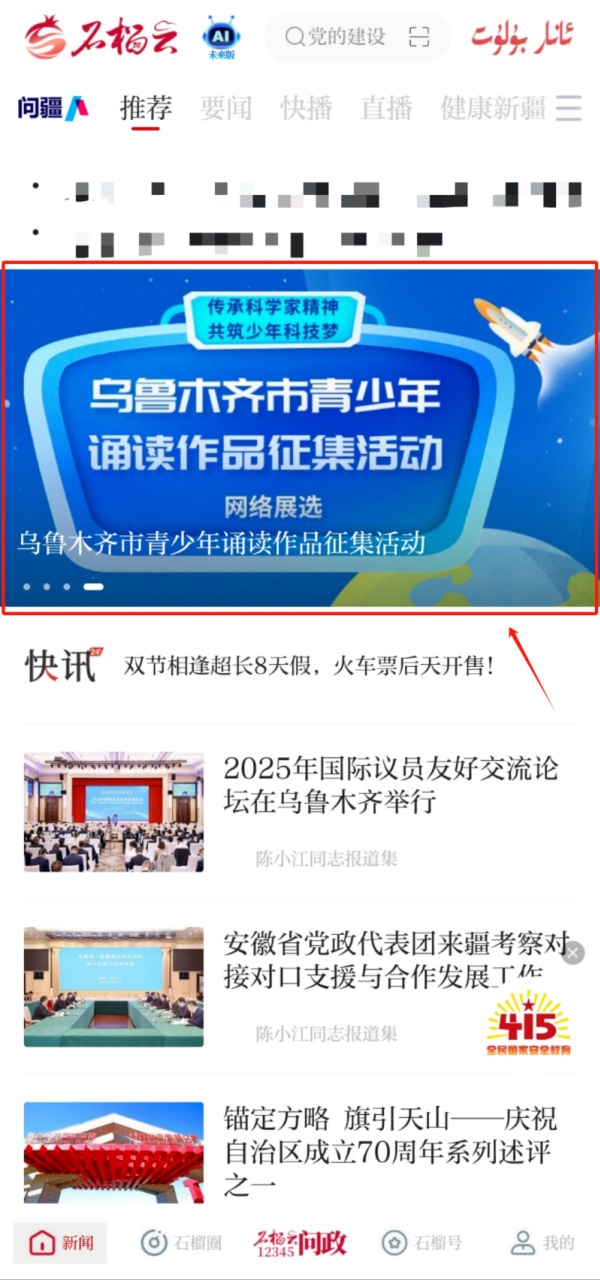 星辰大海的征途,从聆听科学家的故事开始!为庆祝自治区成立70周年,中国科学院新疆分院、乌鲁木齐市教育局、共青团乌鲁木齐市委员会、乌鲁木齐市科学技术协会、石榴云客户端联合开展“传承科学家精神 共筑少年科技梦”乌鲁木齐市青少年诵读作品展选活动。